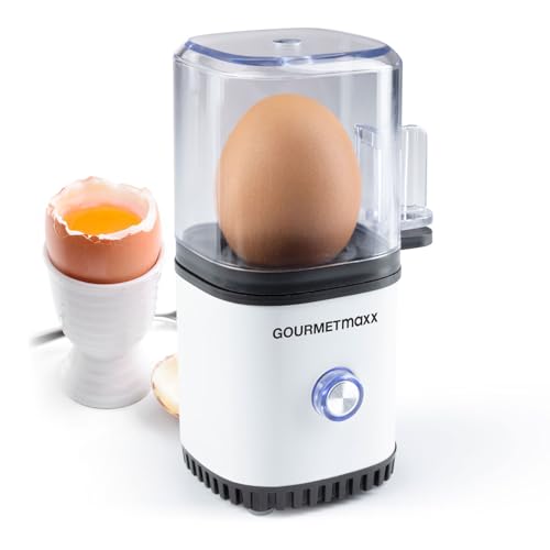 GOURMETmaxx Cuiseur à œufs pour 1 œuf | Cuiseur à œufs avec pique-œuf dans le gobelet doseur | 3 degrés de cuisson pour votre coquetier | Design petit format – pièces lavables au lave-vaisselle
