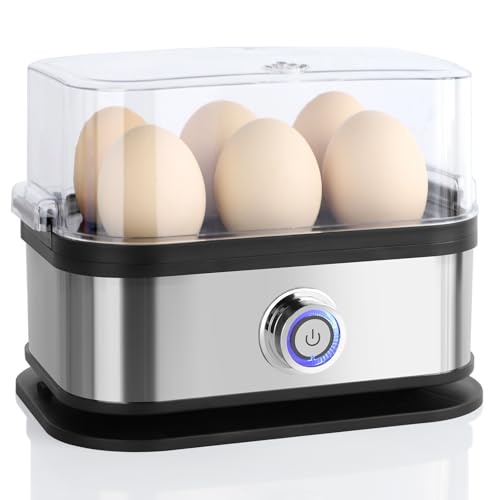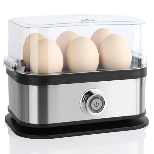 VINATO Cuiseur à Œufs Électrique 6 Œufs | Œufs Mollets, Coque, Durs & Pochés | Nettoyage Facile cuiseur oeuf, argent
