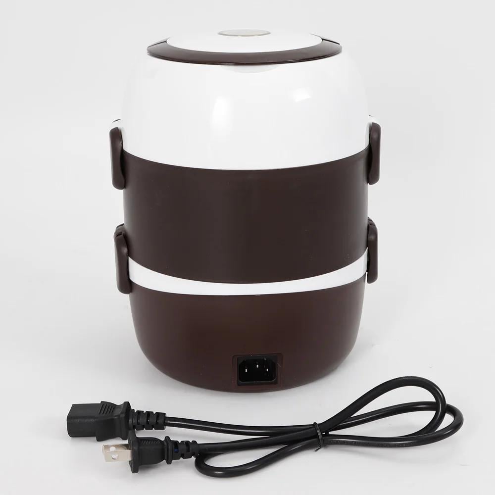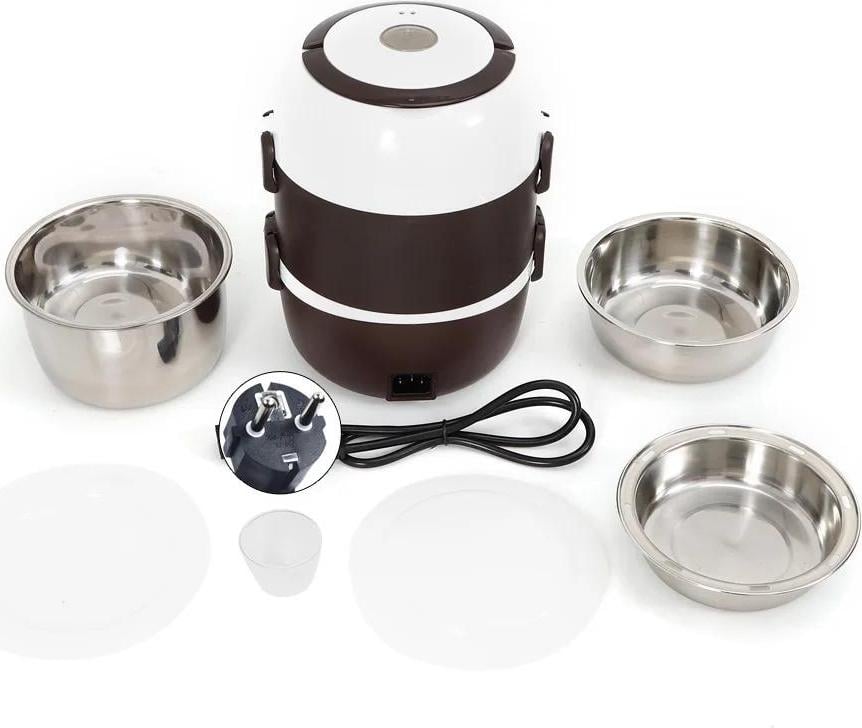 Boîte à lunch électrique portable - cuiseur à riz & vapeur - 3 étages - 2 l (2000 ml) - pot intérieur en acier inoxydable - isolation thermique - marron café