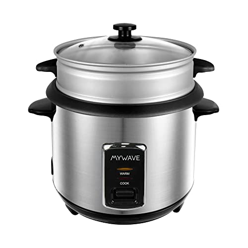 My Wave - Cuiseur de Riz Électrique - Idéal Cuisson Rapide - Puissance 900W - Cuiseur de Riz Capacité 2.2 L - Couvercle en Verre avec Évacuation de Vapeur - Indicateur LED et Pieds Antidérapants