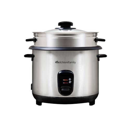 Melchioni Family | LOTO Cuiseur à Riz 1,8L avec Cuisson et Maintien au Chaud, Couvercle en Verre, Revêtement Antiadhésif, Arrêt Automatique, Vapeur, 800W, Accessoires Inclus
