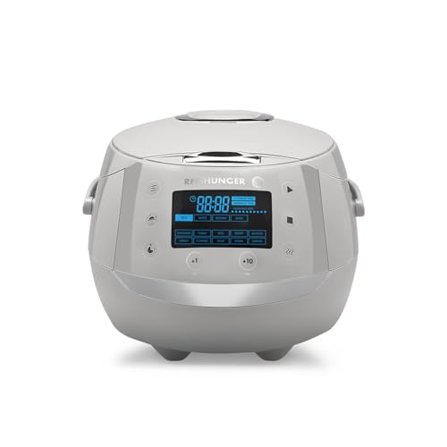 REISHUNGER Cuiseur riz (rice cooker) & cuiseur vapeur numérique gris avec avec bol en céramique & - 12 programmes, technologie 7 phases, 1.5 l jusqu'à 8 personnes - Robot cuiseur