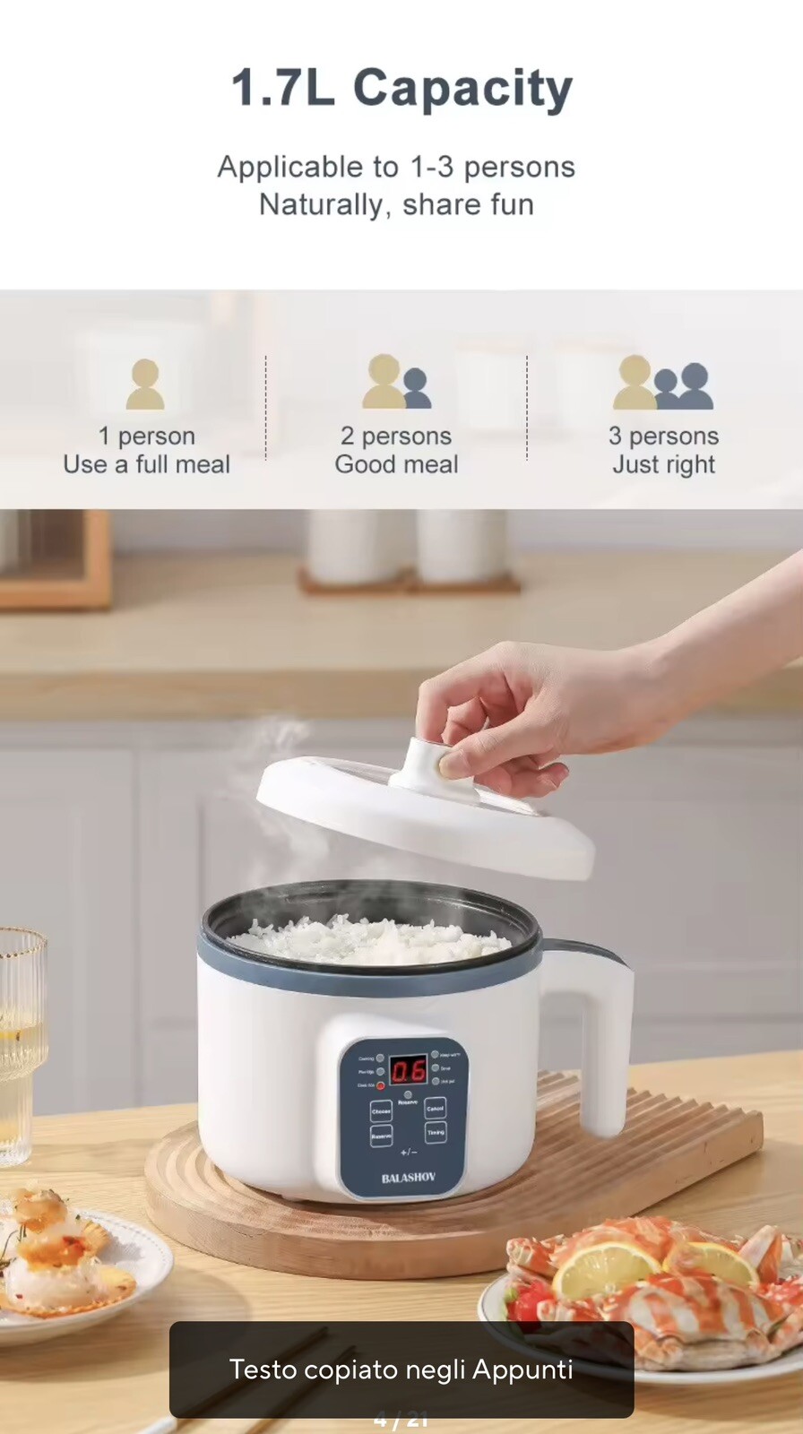 Cuociriso elettrico 600w 1,7 Litres Cuiseur Vapeur à Riz de Table Multifonction