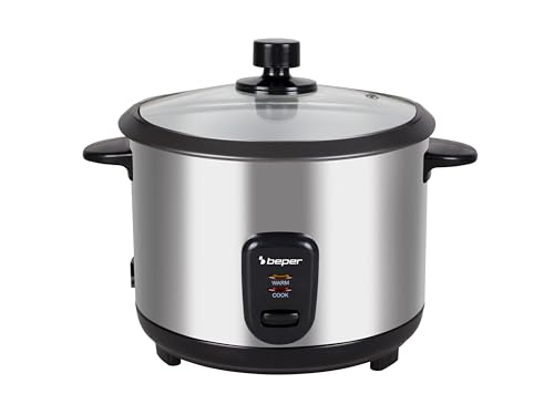 BEPER P101VAP001 Cuiseur à riz électrique avec fonction de rétention de chaleur, panier de cuisson vapeur, revêtement antiadhésif, couvercle en verre, arrêt automatique, acier inoxydable