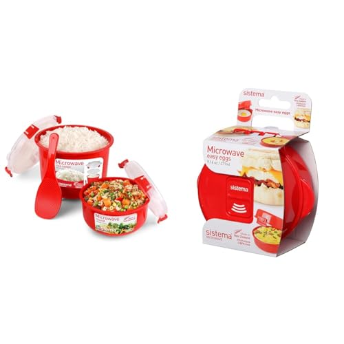 Sistema micro-ondes, cuiseur vapeur pour le riz (2,6 l) micro-ondes, récipient rond & Micro-ondes Easy Eggs | Récipient alimentaire micro-ondes | 271 ml | sans BPA | Rouge