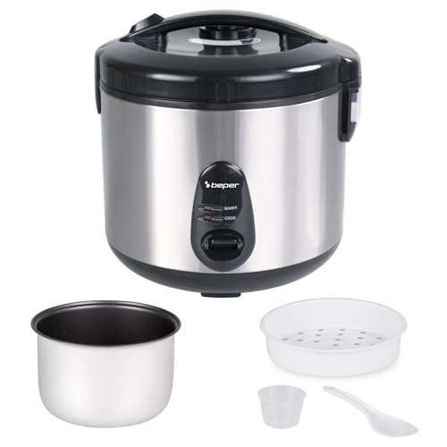 BEPER P101VAP020 Cuiseur à riz Vaporé Max 1800 g, antiadhésif, fonction maintien au chaud, cuisson vapeur, acier inoxydable, accessoires inclus, sans BPA