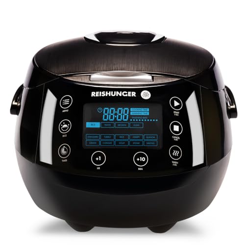 REISHUNGER Cuiseur riz (rice cooker) & cuiseur vapeur numérique noir avec avec bol en céramique & - 12 programmes, technologie 7 phases, 1.5 l jusqu'à 8 personnes - Robot cuiseur