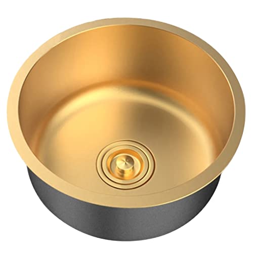 CuNtoHHH Évier Simple en Acier Inoxydable doré, Petit évier Rond, évier de Cuisine pour Camping-Car, Pendaison de crémaillère et Nouvel évier (Couleur : Or, Taille : 40 x 40 x 21 cm)