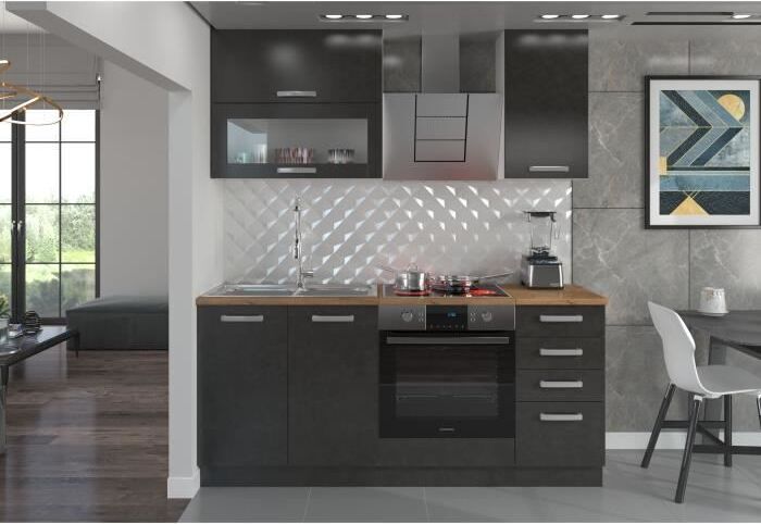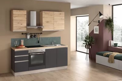 Cuisine complète rock l180 cm - 5 éléments + meuble four - mélaminé décor chene lancelot ROCK180FOUR