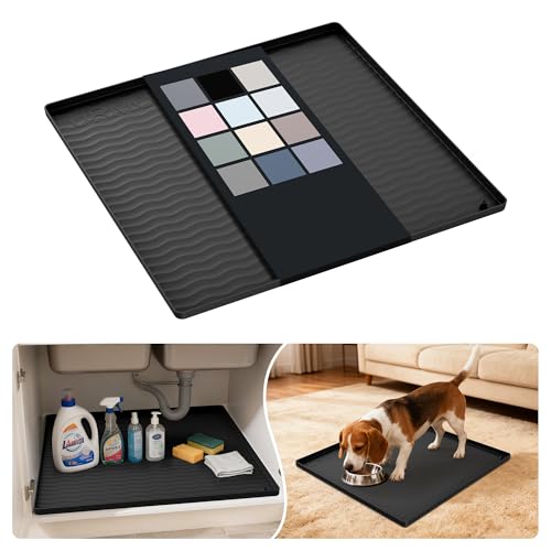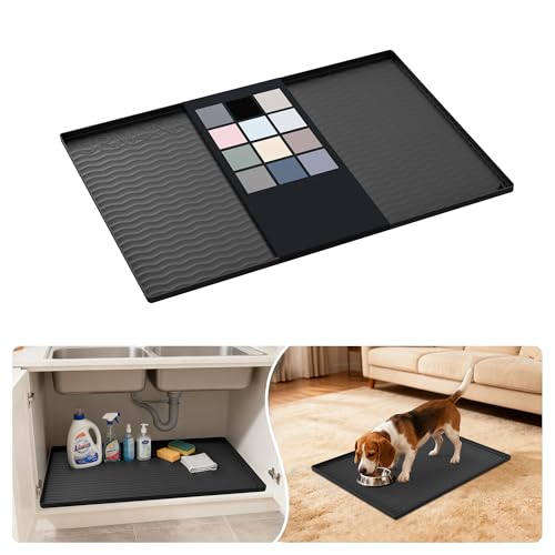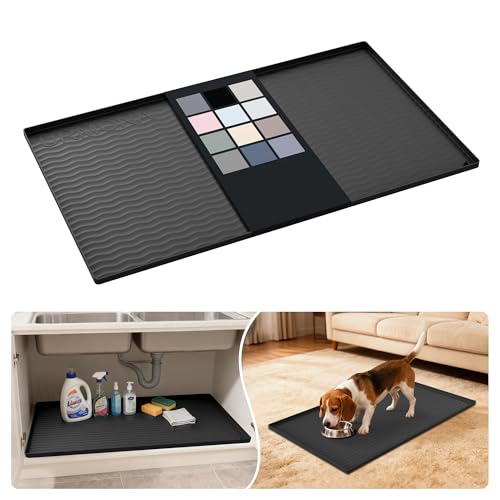URMONA 48 B x 48 L cmTapis de Silicone pour Évier, Rangement Et Organisation De Cuisine, Protège-étagère pour Cuisine et Salle de Bain, Tapis Litiere Chat (Noir)