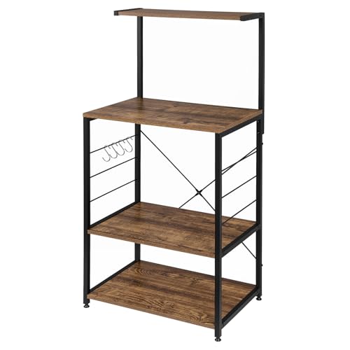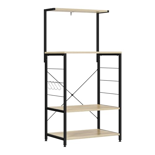 eSituro 4 Niveaux Étagère de Cuisine avec Crochets, Étagère de Micro-Ondes en Métal et Bois, Estante almacenaje pour Cuisine, Salle à Manger, Salon, 60x40x123cm