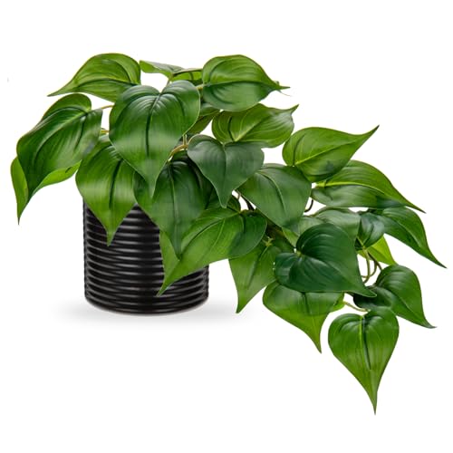 Hollyone Plantes artificielles dans des pots en céramique, faux jade pothos décoratifs, plantes d'intérieur réalistes pour décoration d'intérieur, salle de bain, salon, cuisine, étagère, décoration de