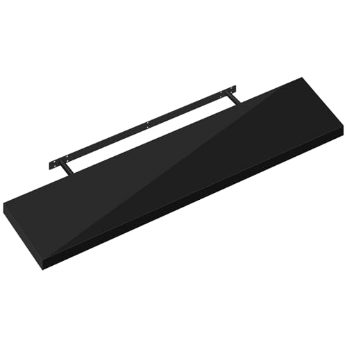 eSituro Étagère Flottante Noir Brillant pour Salon, Cuisine, Étagère Murale en Bois pour Chambre à Coucher, Moderne, Facile à Installer, Fixation Invisible, 90cm