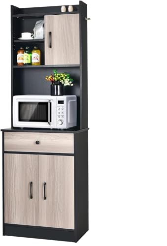 COSTWAY Armoire Cuisine 5 Niveaux, Étagère Cuisine 4 Portes PC Escamotables avec 4 roulettes, Étagère Micro-Ondes pour Salle à Manger, Salon, 60 x 32 x 154 cm, Noir (Noir)