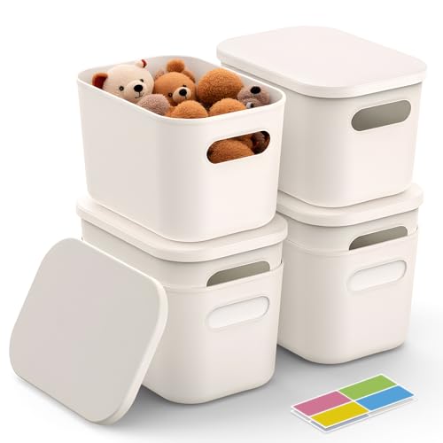 johgee Lot de 6 boîtes de rangement empilables en plastique avec couvercle, pour étagère, cuisine, chambre à coucher, armoire, salle de bain (blanc)