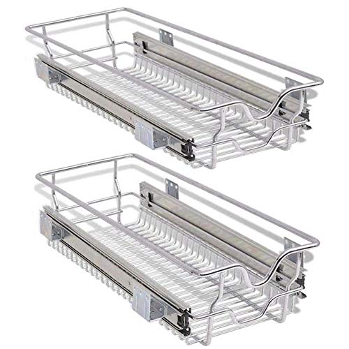 BAKAJI Lot de 2 tiroirs télescopiques à tiroirs télescopiques, Meubles de Cuisine, Panier, étagère Amovible, avec Rail en Acier Inoxydable (30 cm, Lot de 2 pièces)