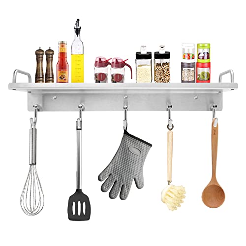 Audmore Étagère à ustensiles de cuisine, étagère à épices avec crochets, support mural, au-dessus de la cuisinière, étagère murale de rangement à suspendre pour spatule, cuillère, organisateur de