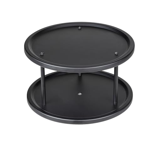 WENKO Organisateur de cuisine Duo noir, plat tournant à 2 étages pour la cuisine, étagère rotatives en acier inoxydable brossé en noir, utilisation polyvalente, Ø 26,5 x 15,5 cm