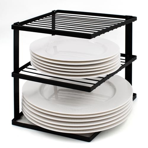 joeji's Kitchen Support à Assiettes Anti-basculement pour Placard de Cuisine, étagère d'angle 25 x 25 x 19 cm, Noir…