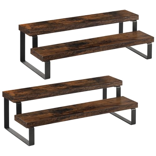 YINMIT Lot de 2 présentoirs en bois à 2 niveaux pour comptoir de cuisine, étagère à épices, étagère de présentation pour parfum, maquillage, figurine, collection de poupées, condiments
