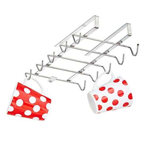 Relaxdays Support tasses, dispositif armoire, 10 tasses, en métal, système accrochage cuisine, étagère HLP 6x14x28cm,