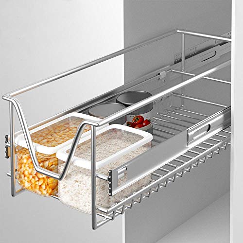 BAKAJI Tiroir télescopique Meuble de Cuisine Panier étagère Amovible avec Rail en Acier Inoxydable (60 cm)