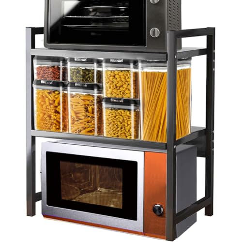 Shally Dogan Étagère à micro-ondes en acier, étagère de cuisine avec étagère à épices, unité d'étagères à 2 compartiments avec pieds antidérapants, design moderne (noir + noir)
