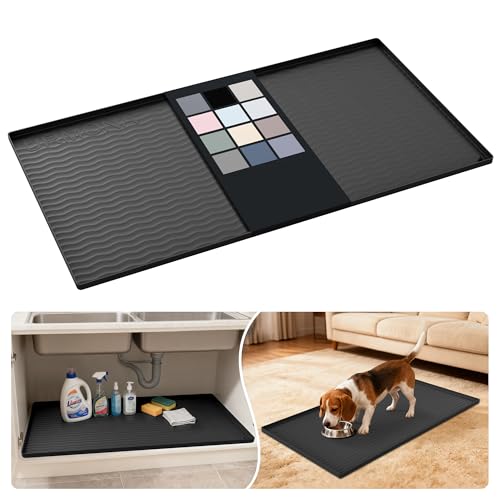 URMONA 48 B x 71 L cmTapis de Silicone pour Évier, Rangement Et Organisation De Cuisine, Protège-étagère pour Cuisine et Salle de Bain, Tapis Litiere Chat (Noir)