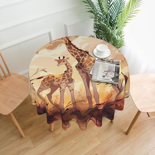 POEZJZW Nappe ronde en polyester avec motif girafe mère et enfant 152,4 cm pour fête, pique-nique, cuisine, décoration extérieure