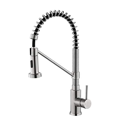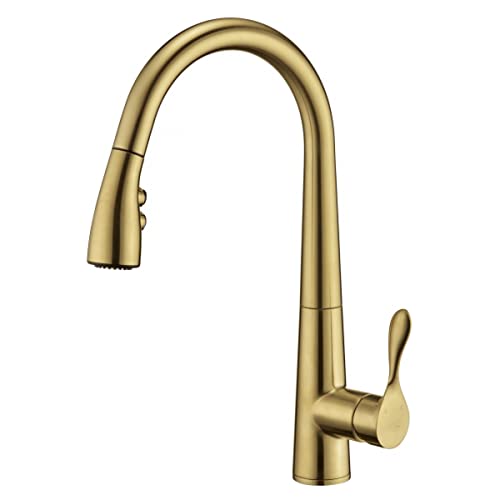 VeeBath Henry Robinet mitigeur de cuisine moderne à bec pivotant à levier unique pour évier de cuisine en laiton brossé avec bec de 20 cm