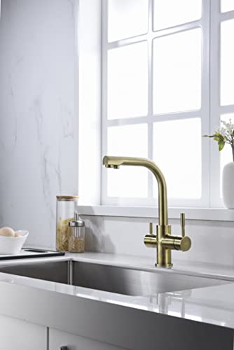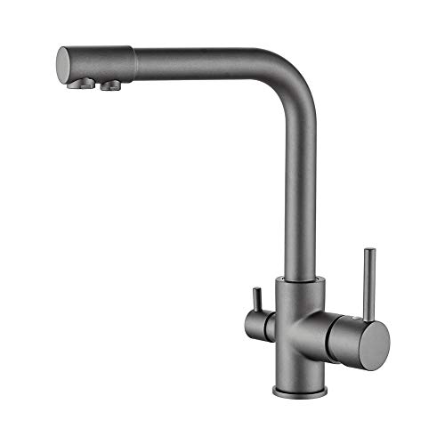 GRIFEMA Robinet de Cuisine à 3 Voies avec Rotatif 360°,Mitigeur Cuisine en Laiton de Deux Sortie pour l'eau Froide/Chaude et l'eau Filtrée