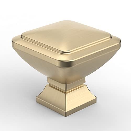 9BUILD Lot de 10 boutons d'armoire de cuisine carrés en laiton brossé de 3,1 cm – Boutons de tiroir dorés pour armoires