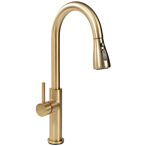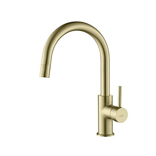 Rea ROBINET DE CUISINE Nest Gold Brush Mitigeur évier de Cuisine en Laiton Chaude et Froide Réglable monocommande Pivotant à 360° (Or brossé)