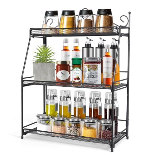Uten Étagère à épices, Présentoir à épices à 3 étages, Etagère de Rangement Pliable, Porte-épices pour Pots dans la Cuisine, le Placard, Salle de Bain