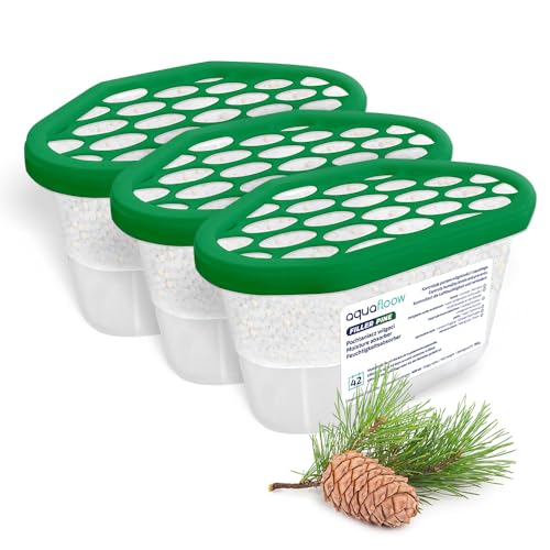 Aquafloow Déshumidificateur 400 ml, Réduit l'humidité de l'air, 3 Pièces PINE | Neutraliseur d'odeurs, Absorbeur d'humidité pour Cuisine, Placard, Salle de Bain et Bureau