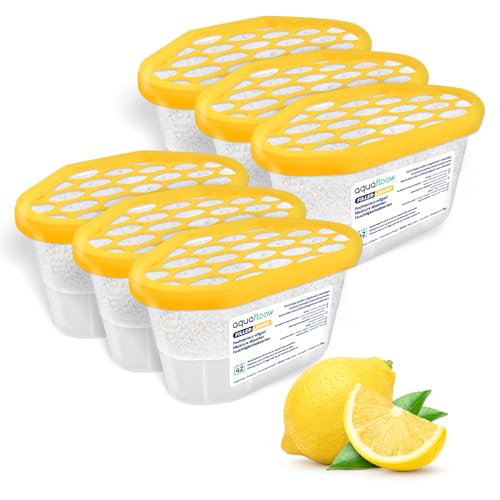 Aquafloow Déshumidificateur 400 ml, Réduit l'humidité de l'air, 6 Pièces LEMON | Neutraliseur d'odeurs, Absorbeur d'humidité pour Cuisine, Placard, Salle de Bain et Bureau