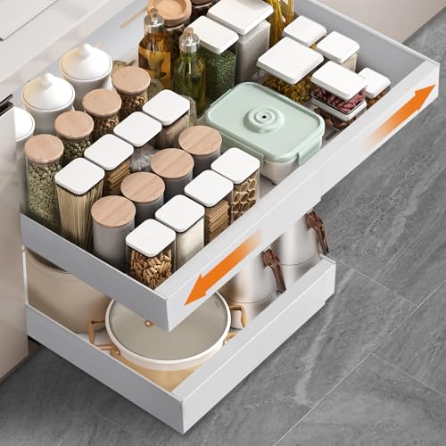Paquet de 2 Tiroir Coulissant Cuisine Adhesif, Bac Coulissant Placard Cuisine, Organisateur D'Armoires De Cuisine Pour Armoires de Cuisine, Organisateur de Tiroirs, Aucun PerçAge ni Clouage Requis