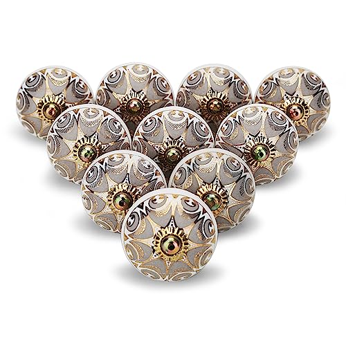 FURNISHFUL FINESSE Dorée Gris Boutons de Porte D'armoire Boutons de Tiroir en Céramique Commode Pour Tiroir Cuisine et Meubles Placard et Poignées en - Lot de 6