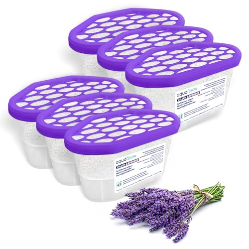 Aquafloow Déshumidificateur 400 ml, Réduit l'humidité de l'air, 6 Pièces LAVENDER | Neutraliseur d'odeurs, Absorbeur d'humidité pour Cuisine, Placard, Salle de Bain et Bureau