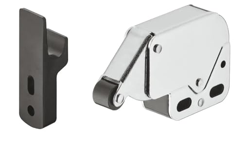 cyclingcolors Loqueteau noir acier à ressort automatique et rouleau avec contre pièce argent chromé loquet fermeture meuble porte placard cuisine salle de bain