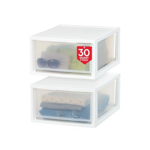 IRIS Lot de 2 tiroirs de rangement empilables en plastique avec portes transparentes pour garde-manger, chambre, placard, cuisine, sous-évier, maison et bureau, chaussures et travaux manuels – Blanc