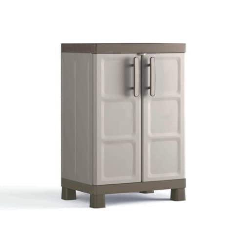 Keter Armoire Basse Excellence - Armoire de Rangement en Résine Multifonctions - Étagères Modulables, Pieds Surélevés - Cuisine, Garage, Atelier, Placard - 65 x 45 x 97 cm - Sable/Terre