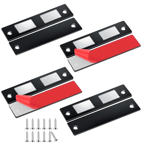 Romon Aimant Porte Placard, 4 Pièces Ultra Mince Loqueteaux Magnétiques Puissant Aimant de Porte Placard Cuisine Loquet Magnétique Vis Aimant Meuble Fermeture pour Tiroir, Armoire Coulissant, Noir