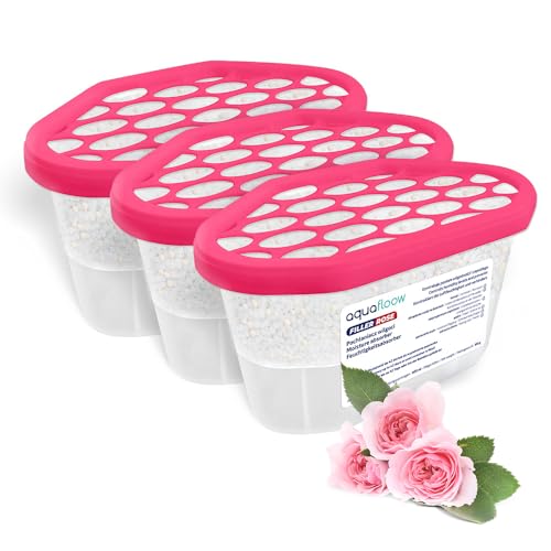 Aquafloow Déshumidificateur 400 ml, Réduit l'humidité de l'air, 3 Pièces ROSE | Neutraliseur d'odeurs, Absorbeur d'humidité pour Cuisine, Placard, Salle de Bain et Bureau