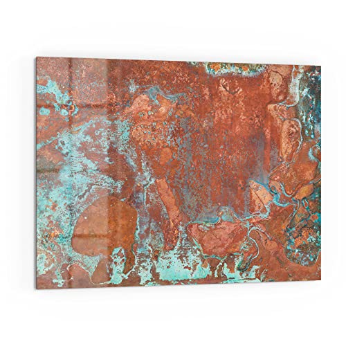 DEQORI Plaque de crédence de cuisine en verre | Motif plaque de cuivre rouillée | 80 x 60 cm | Panneau arrière de salle de bain ou de cuisinière | Protection anti-éclaboussures pour cuisine et salle