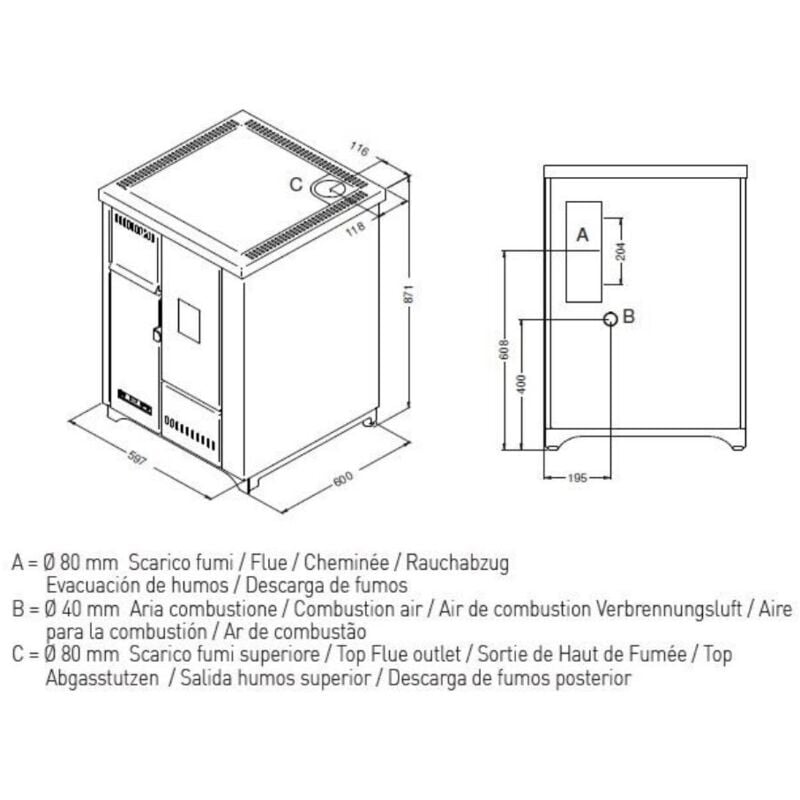 Punto Fuoco – Cuisinière à granulés 7.2 kW – Volume de chauffe 70 à 160 m³ – Réservoir 16 kg – Classe énergétique A+ – Système Eco-Stop