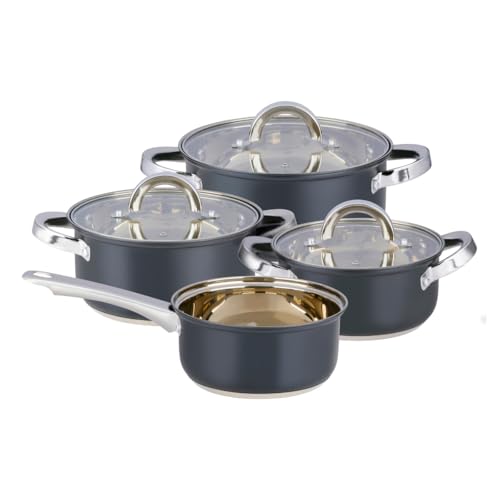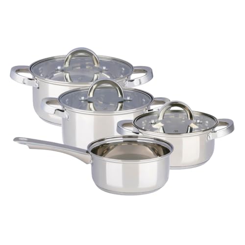 Alpina Batterie de Cuisine Induction 4 Pièces – Casseroles Inox avec Couvercles en Verre – Set Marmites Tous Feux – Casseroles Induction – Ustensiles de Cuisine Inox