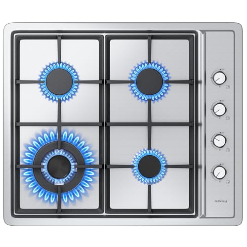 Plaque de Cuisson à Gaz 4 feux - Plaque Gaz Avec 4 brûleurs- Table de cuisson 60cm, Cuisinière Encastrable - Gazs Naturel/Propane (4 Brûleurs - Acier Inoxydable) …