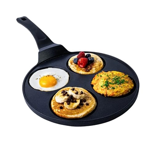 Mastrad – Poêle À Blinis & Pancakes 4 Empreintes – Tous Feux Dont Induction – Fonte d’Aluminium – Revêtement Antiadhésif – Cuisson Homogène – Idéale Brunch, Œufs Ronds & Pancakes