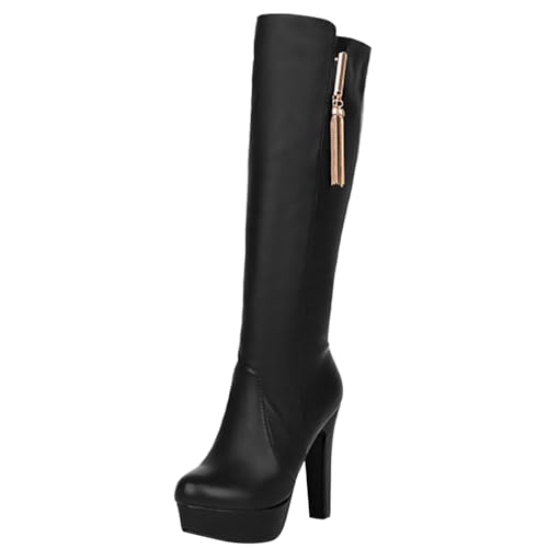 Allbestop Bottes pour Femme, Botte Cuissarde Femme Botte au Dessus Du Genou Bottes Talon Haut Talons Boot Cuir Mi-Mollet(Noir,42)